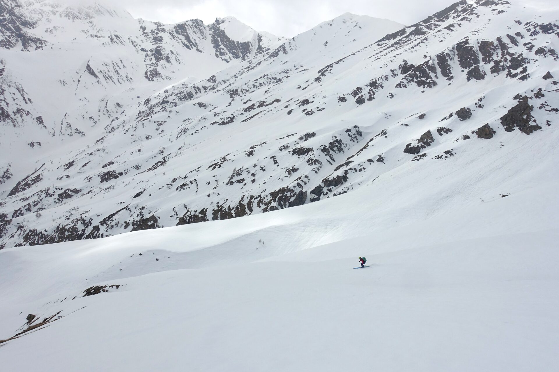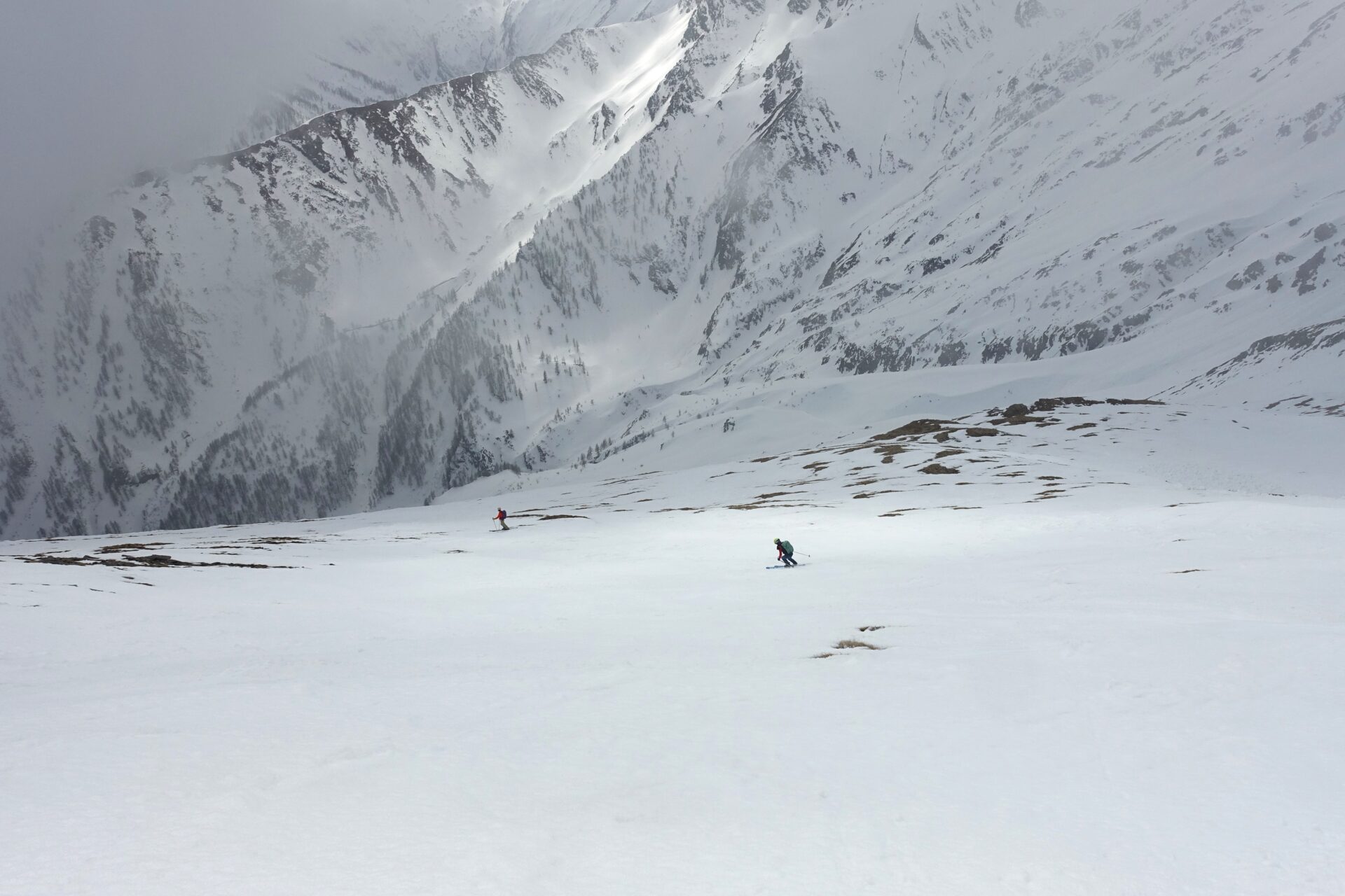 Se si scende lungo i dossi percorsi in salita la difficoltà è quella indicata (BS), ma sono possibili diverse varianti (anche più ripide, di difficoltà OS) a seconda delle condizioni fino ai ripiani a quota 1.960 m, poi il rientro è obbligato, lungo l’itinerario di salita.