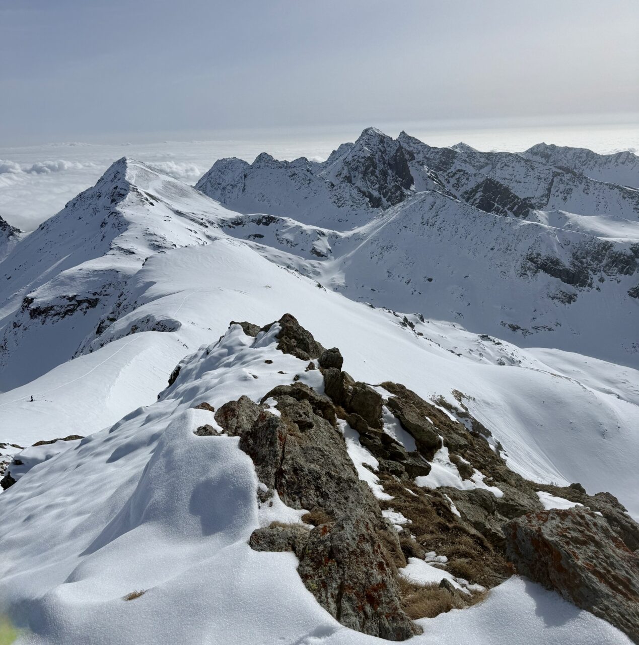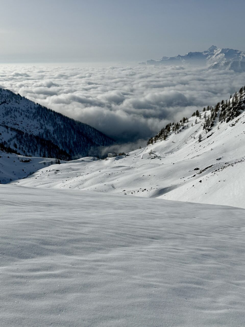 Percorso molto bello e vario con in media difficoltà BS, ma con un tratto un po’ più ripido tra la dorsale del colle del Sabbione e il raccordo con il sentiero estivo che sale al colle stesso; ottima alternativa al più ripetuto Scivolo Sud dell’Orsiera o al Roc del Ciardonet.