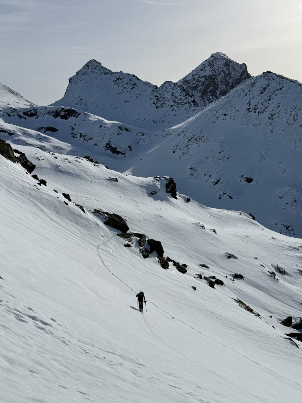 Lungo il percorso di salita, per approfittare degli ottimi pendii su neve trasformata.