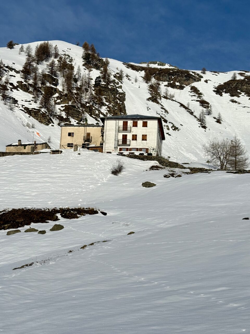 b-c: Dalle ex grangie Sors, vicine al casotto della centrale idroelettrica del rifugio, si sale in dir. nord per ampi pendii, seguendo sempre la direzione del tracciato estivo della mulattiera che porta la rifugio. Ci si avvicina poi al rio in un tratto più incassato e transitando vicino ad un successivo casotto si sale l’ultima rampa ripida sotto il rifugio, che si raggiunge agevolemente a quota 2.040 m.