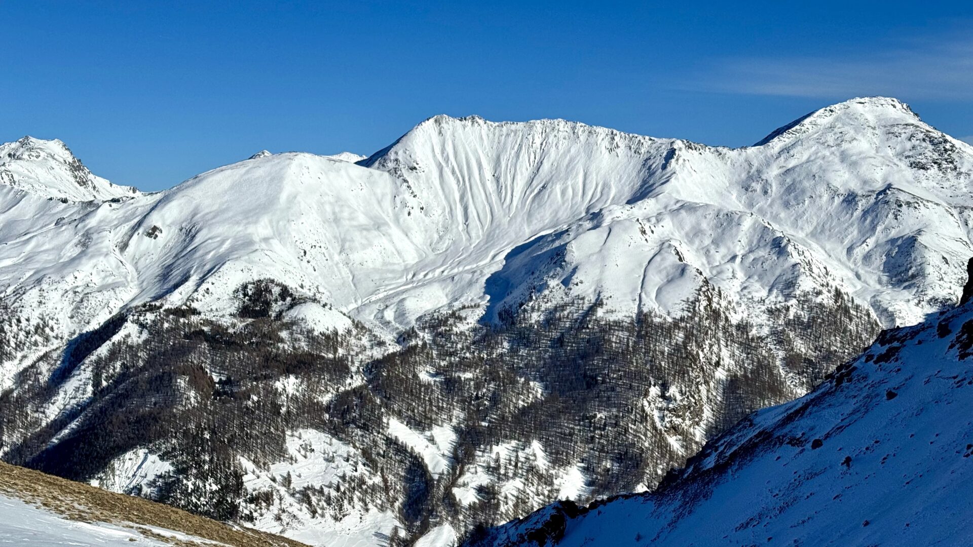 Altra bella linea di discesa, tra le innumerevoli possibili è, scesi al colletto sotto il costone nord-ovest, dove un tempo arrivava lo skilift Belotte (ancora ben evidenti i ruderi della stazione), proseguire in pieno ovest sulla destra orografica del rio della volpe, fino all’abitato di Laval e alla vicina pista da fondo. Quest’ultima variante di discesa va intrapresa soltanto con neve sicura.