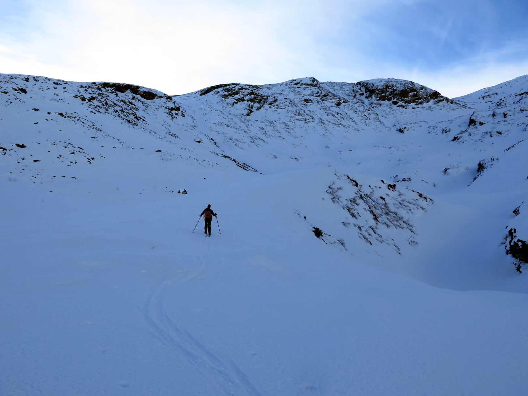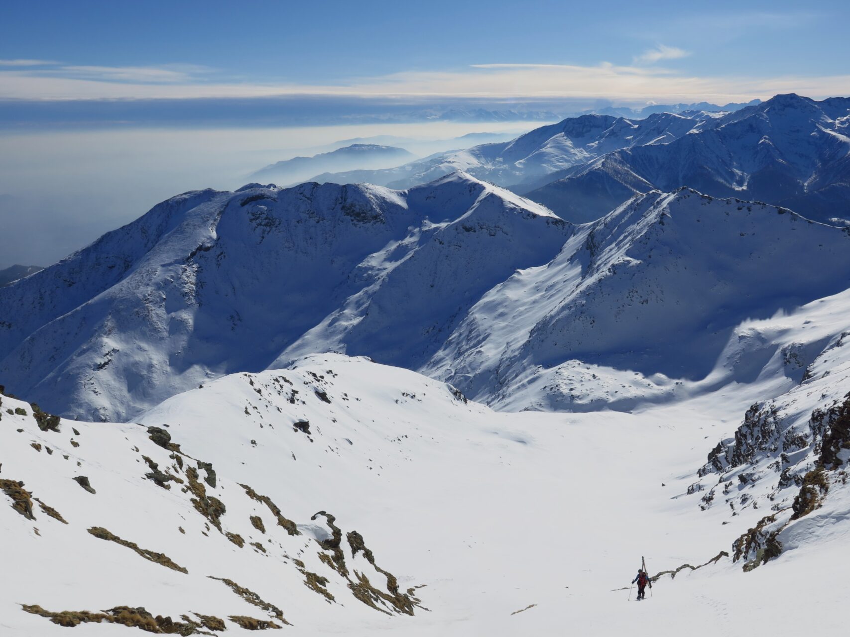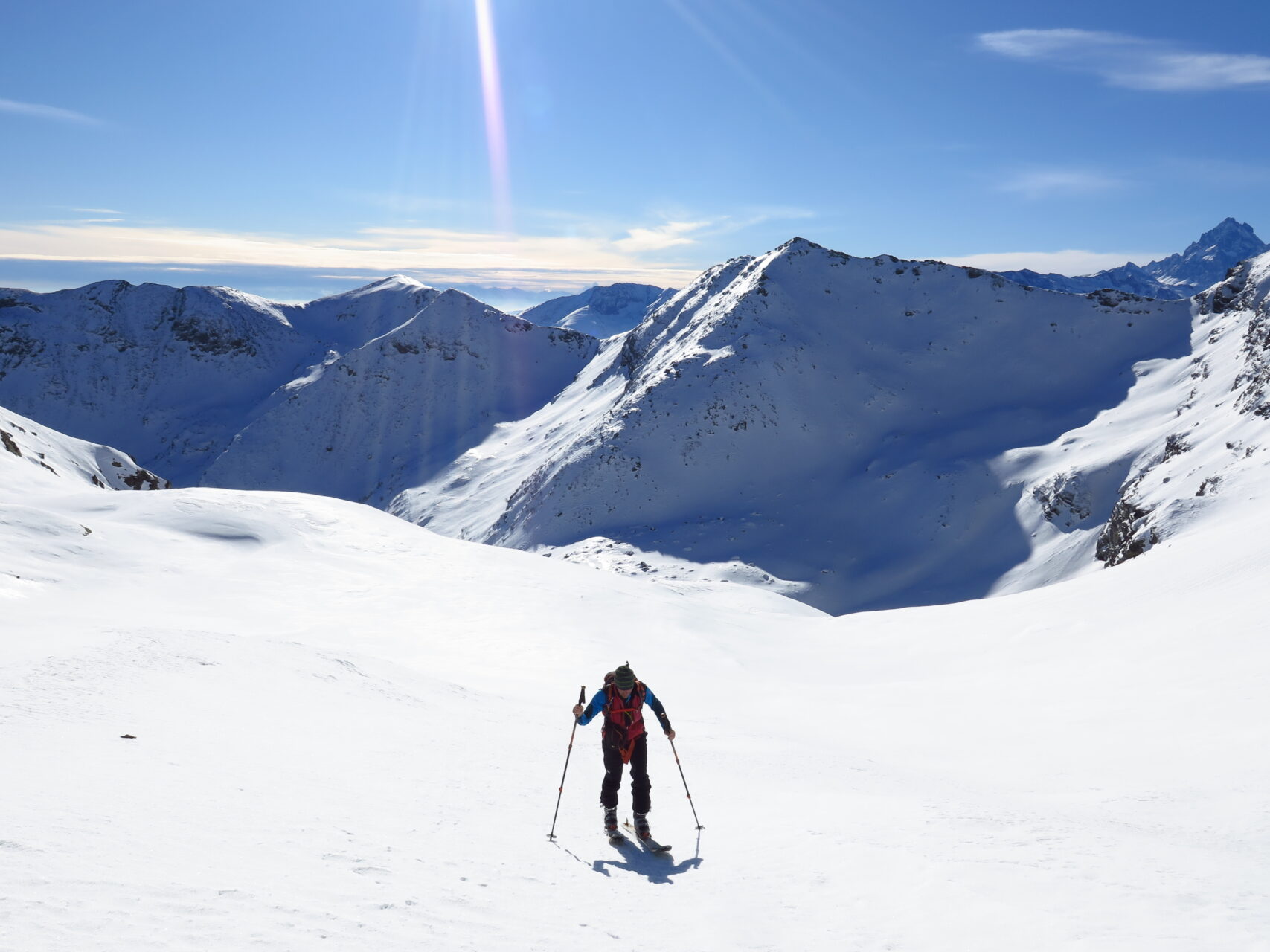 Gita sconosciuta e selvaggia della Val d’Angrogna, si trova incastonata tra la punta Freidour e il Monte Peigrô, con il suo canale sud nascosto fino a quando non si giunge alla base dello stesso. Salendo da questo versante la cima svetta sopra l’alpe della Sella Vecchia mentre dal versante opposto si affaccia sul vallone della Cialancia e sul Lago Lauson. Durante la lunga salita si incontrano varie esposizioni: il primo tratto, su strada, è molto incassato e esposto a nord-est (la partenza di prima mattina regala temperature spesso molto basse), mentre i pendii superiori e il canale offrono il piacevole tepore del sole, una volta superato l’ultimo alpeggio. Lungo il pendio canale finale (150/200 m con tratti superiori ai 35°) possono servire picca e ramponi. La cima è costituita da un castelletto roccioso che si supera agevolmente senza sci ai piedi sul lato val Pellice. Gita consigliata solo con neve assolutamente sicura.
