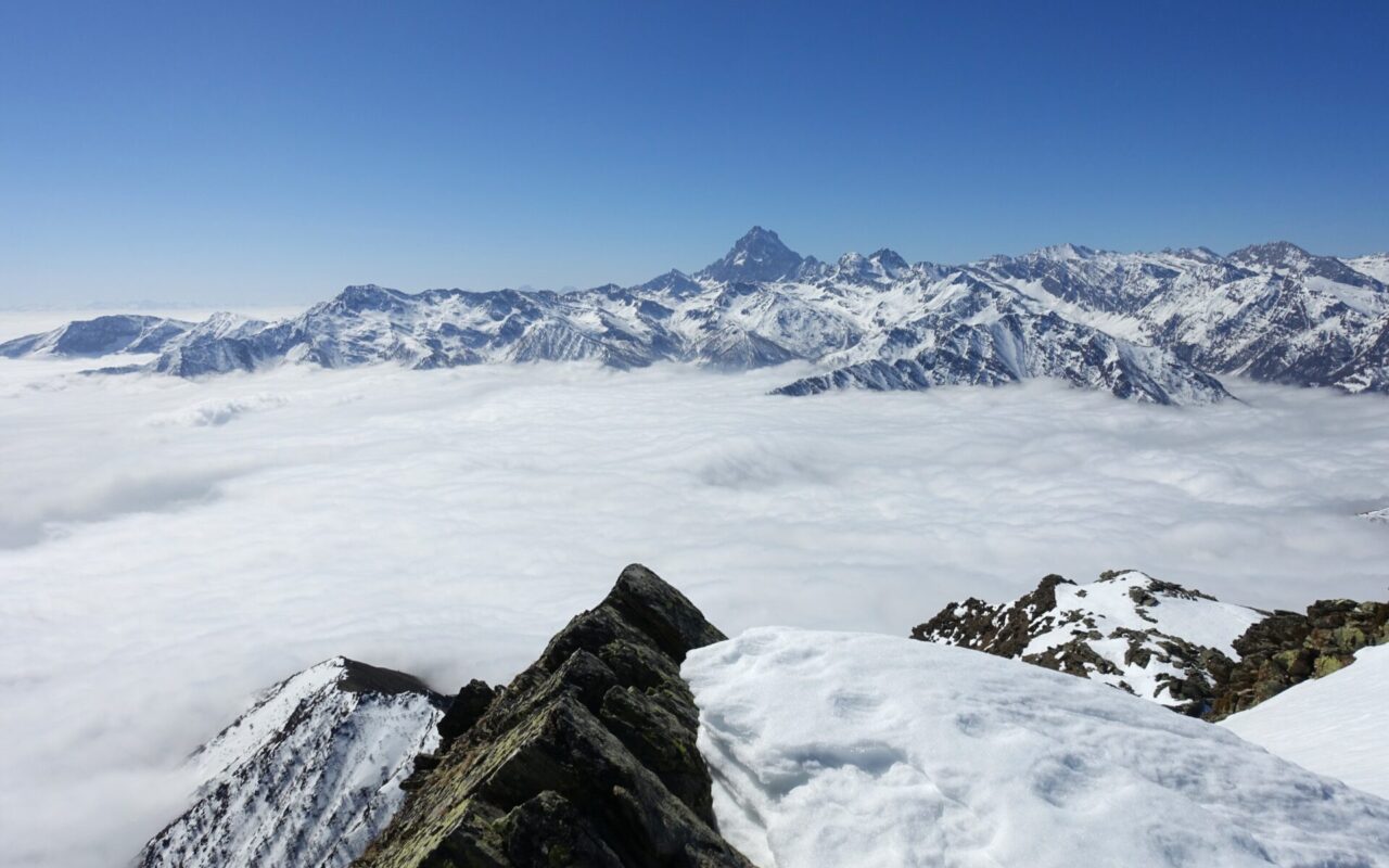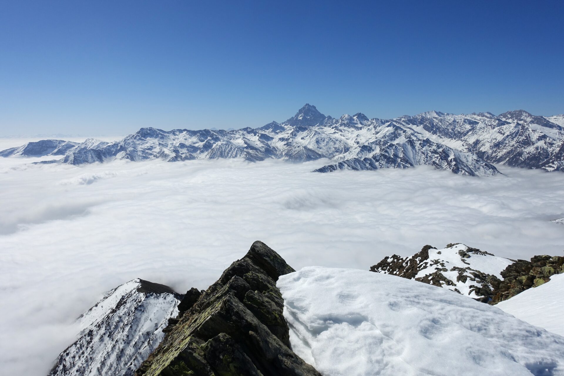 Questo itinerario, che si snoda tra Val Pellice e Germanasca, permette di raggiungere una cima davvero poco frequentata dagli scialpinisti, ma non per questo poco meritevole. Fino al Col Rousset la salita segue l’itinerario della classica invernale da Giordano, ma con condizioni primaverili e di neve assestata è possibile scendere sul versante opposto e avere così accesso alla parte alta del Vallone Giulian-Cruello. Le condizioni della discesa dal Col Rousset, lato Val Pellice, possono variare a seconda della stagione, ma in genere si deve affrontare una cinquantina di metri lineari su pendenze sostenute (40-45° spesso su neve dura). Per questo tratto (e per la sua risalita al rientro), si consiglia di avere con sé piccozza e ramponi. Il dislivello della gita può variare, a seconda di quanto si decide di scendere prima di ripellare, sia all’andata, sia al ritorno.