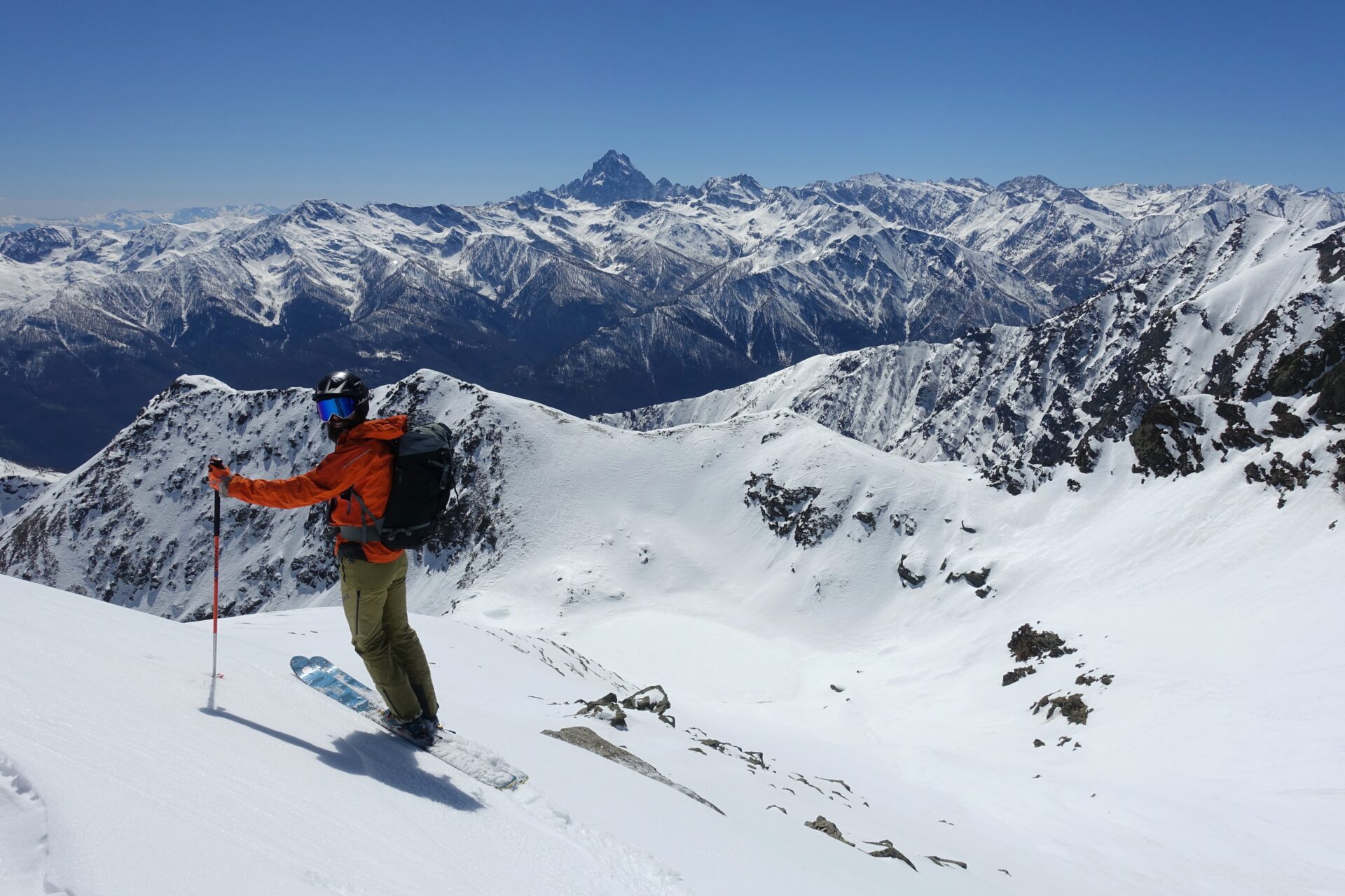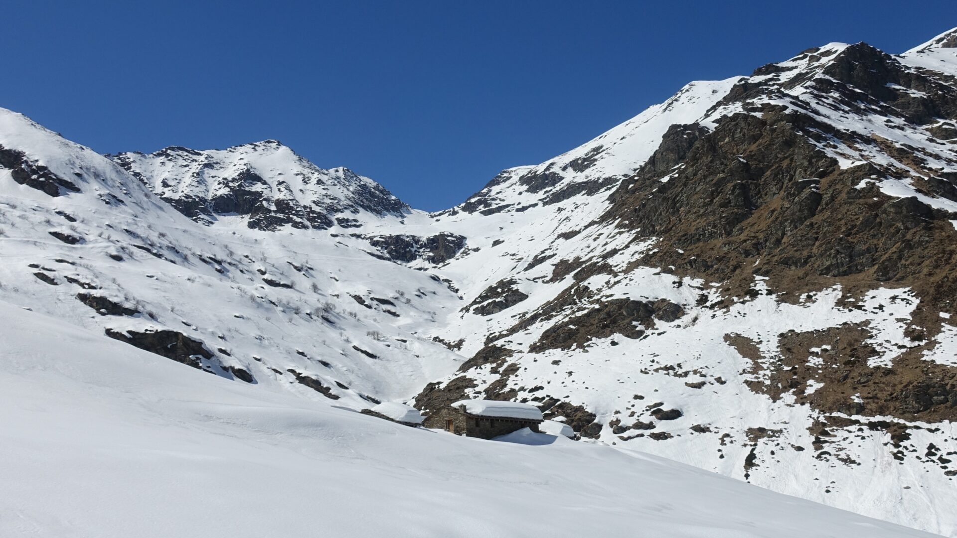 Traversata selvaggia, poco ripetuta e di buon impegno tecnico che permette di transitare nel bacino dei Tredici Laghi, nella Conca Cialancia, e di discendere l’intera alta Valle d’Angrogna. Per percorrere questo itinerario è necessario attendere di avere neve sicura su tutte le esposizioni, a costo di aumentare la parte da percorre sci in spalla nella porzione terminale della discesa. La prima parte dell’itinerario è in comune con la salita al Passo Roux. Sono necessari ramponi e piccozza per la risalita del canale che dà accesso alla cresta dalla quale inizia la discesa. Occorre considerare molto bene gli orari di partenza, in quanto i pendii alti del primo tratto di discesa prendono sole fin dalle prime ore del giorno e la parte bassa dell’itinerario si sviluppa a basse quote.